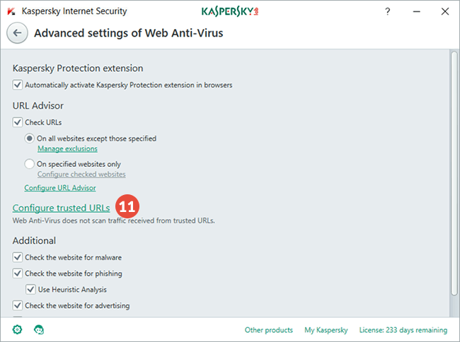 Go to “Settings” > “Protection” > “Web Anti-Virus” (9).